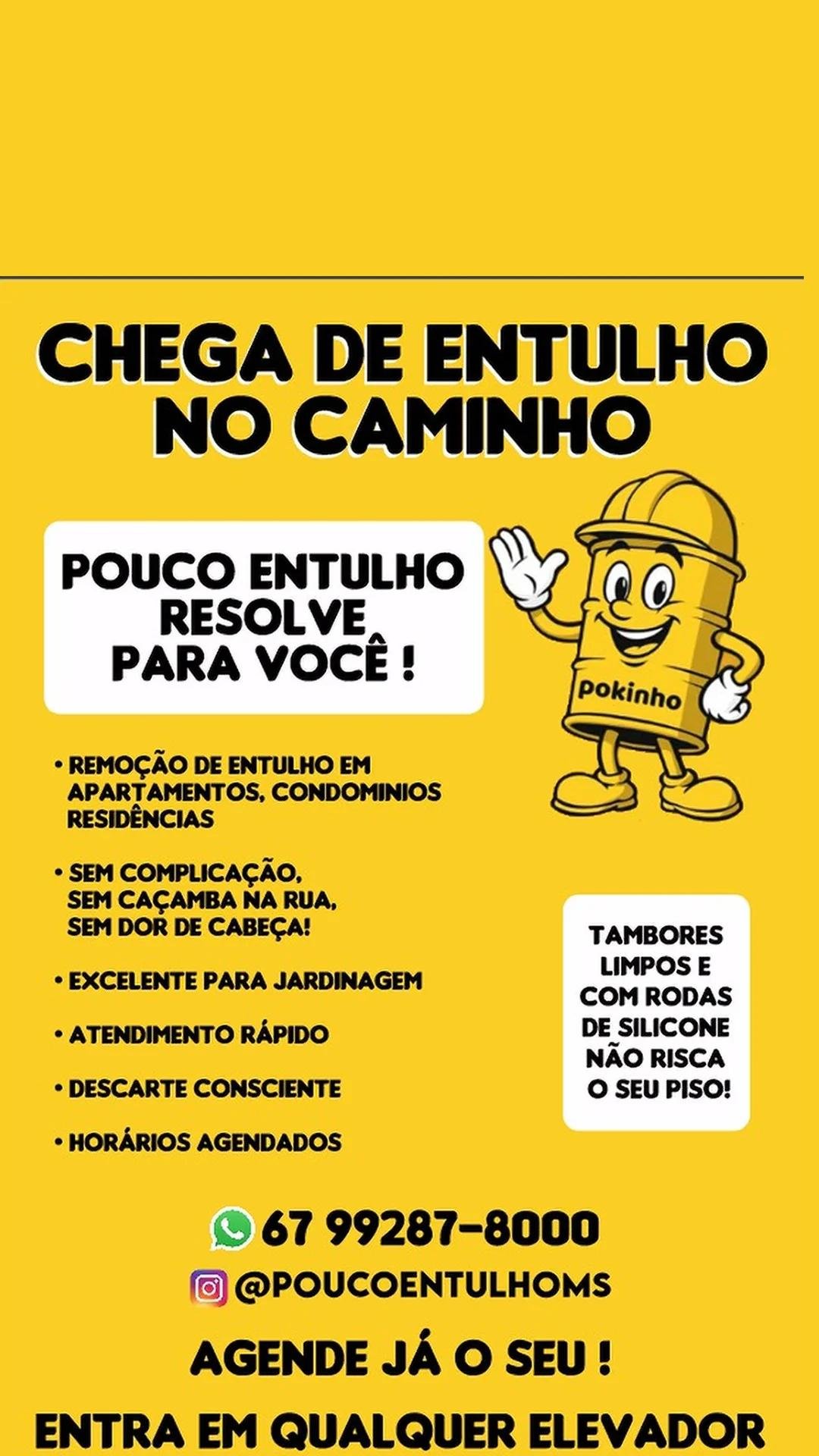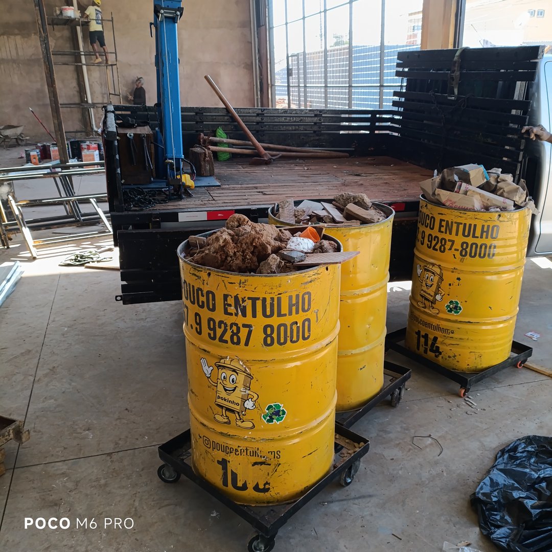 Locação de caçamba pequena para pouco entulho ( tambores com rodas de borracha) que entram em qualquer elevador